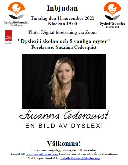 Anmäl till. sormland@dyslexi.org I samband med din anmälan får du Zoom-länken