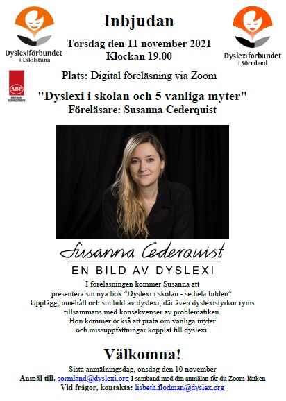 "Dyslexi i skolan och 5 vanliga myter" Föreläsare: Susanna Cederquist
