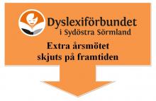 Hej! På grund av rådande corona-pandemi så skjuts Dyslexiförbundet Sydöstra Sörmlands Extra årsmöte på framtiden. Inbjudan/kallelse kommer så snart omständigheterna så tillåter