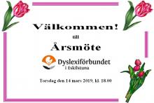 Välkommen på Årsmöte för lokalföreningen Dyslexiförbundet Sydöstra Sörmland, 2 oktober-2019