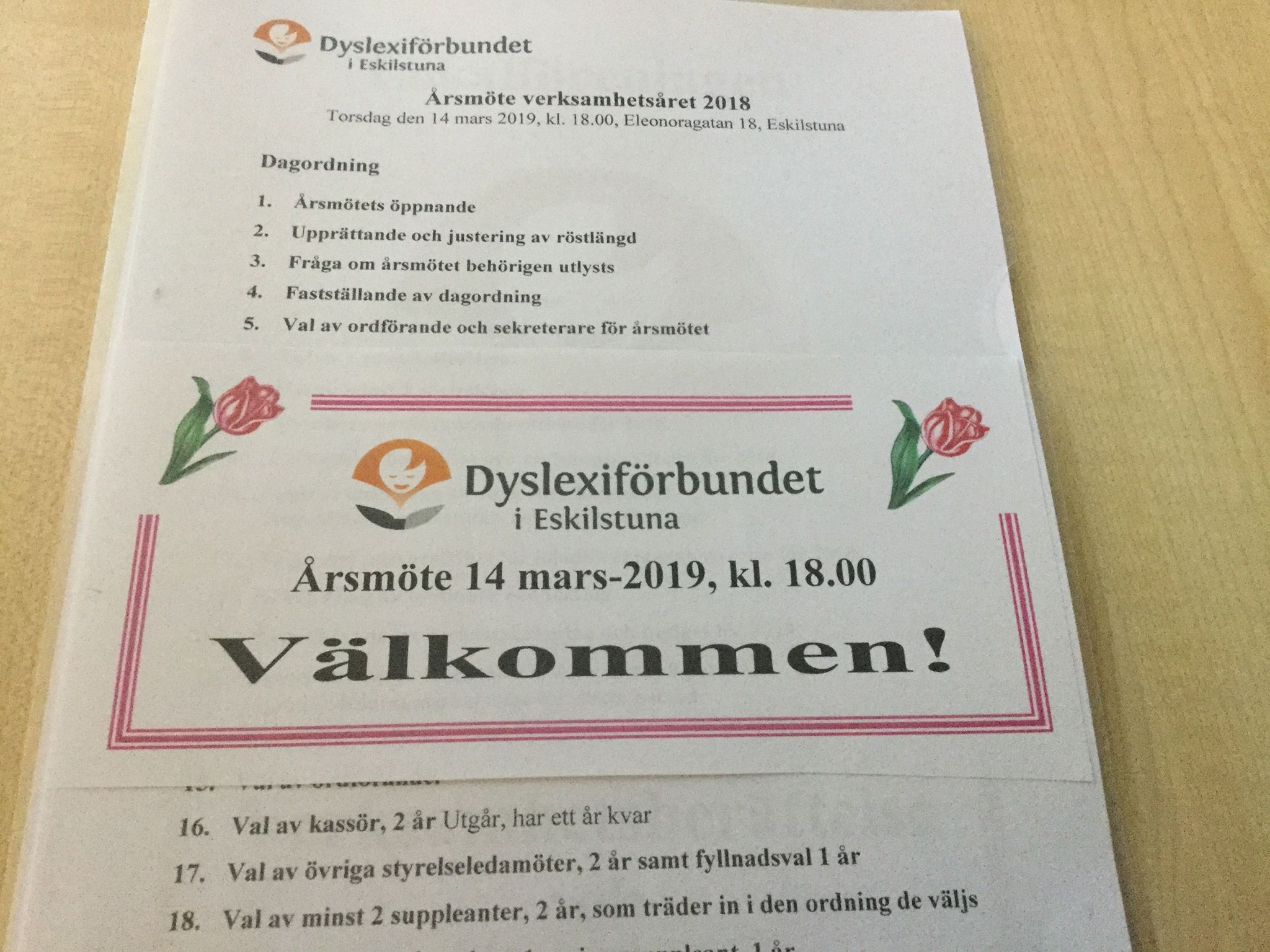 Kort rapport från Dyslexiförbundet Eskilstunas årsmötet och lite framtidstankar