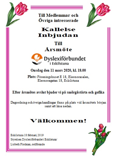 VÄLKOMMEN! på Årsmöte med Dyslexiförbundet i Eskilstuna