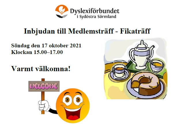 Medlemsträff - Fikaträff, söndag den 17 oktober-2021, kl. 15.00-17.00